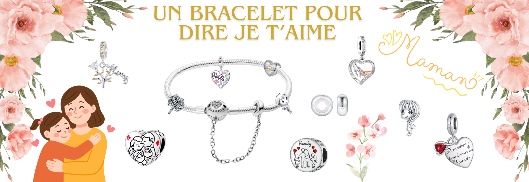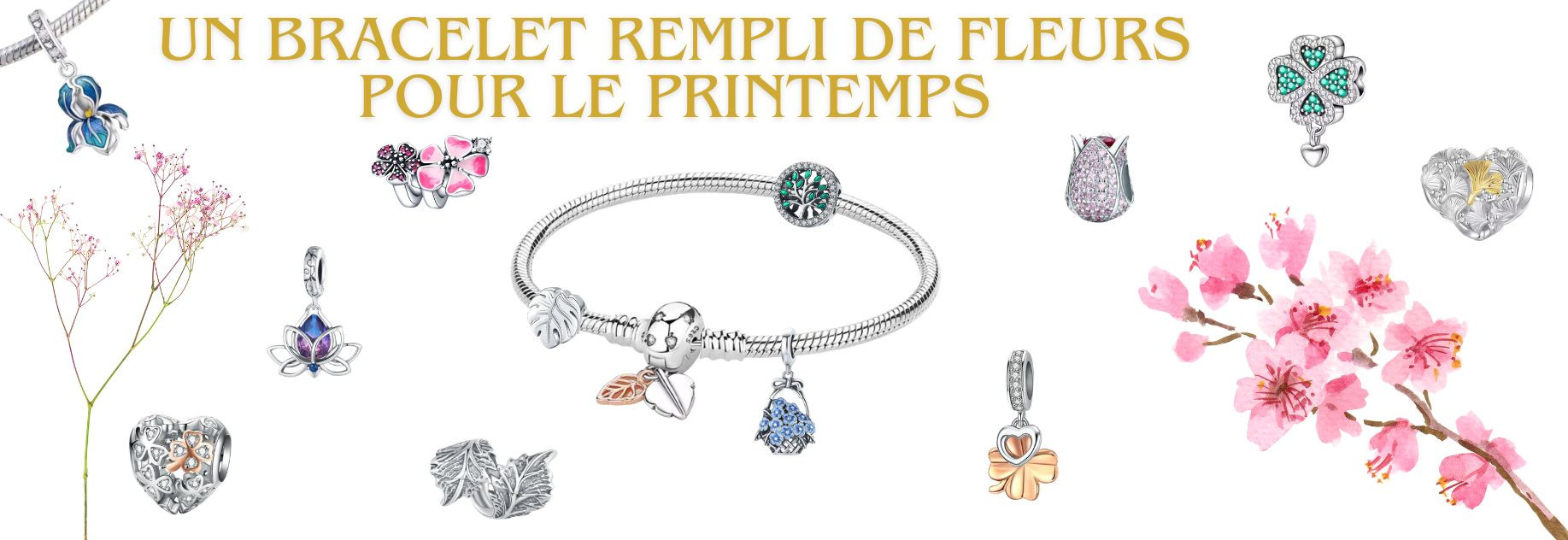 Charm pour bracelet initiale lettre prénom alphabet fleur