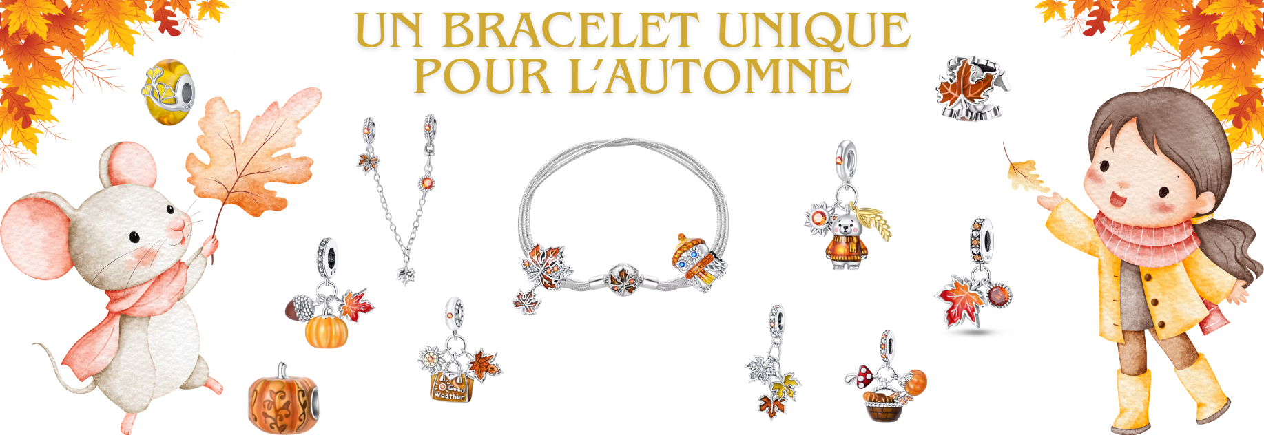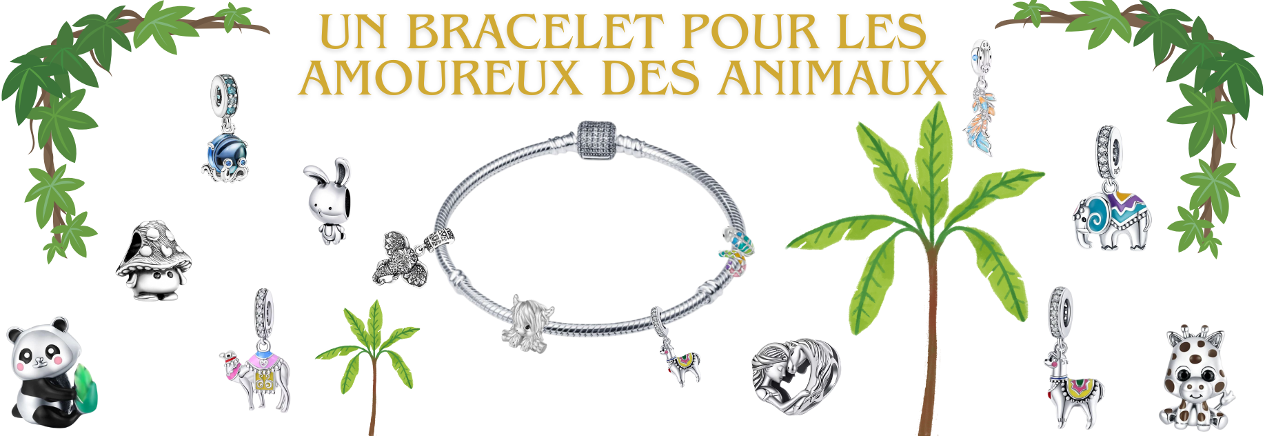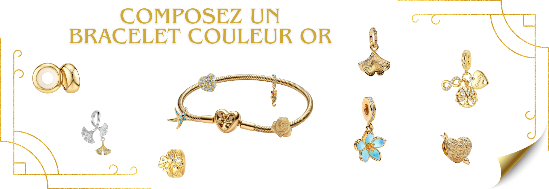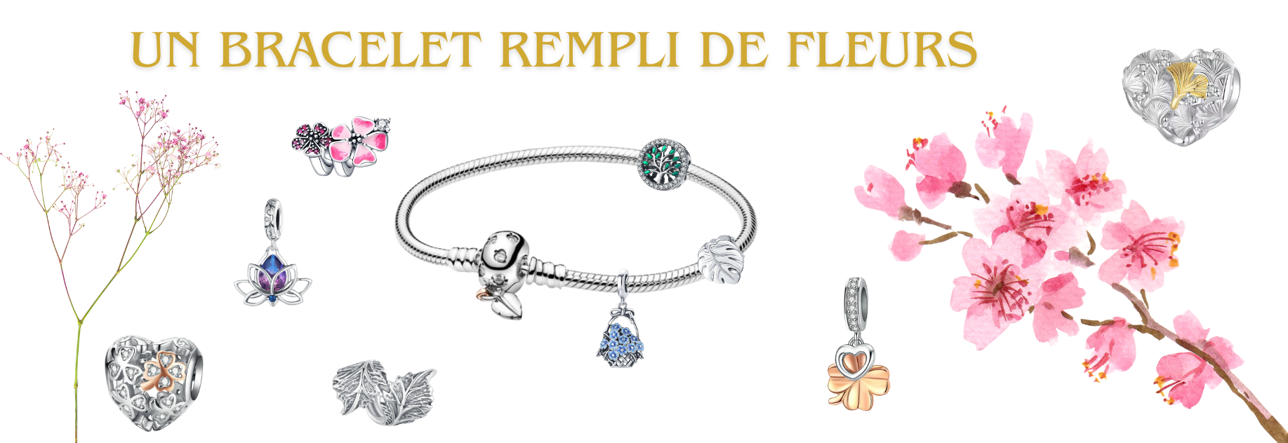 bracelet pour charm argent feuille argent or